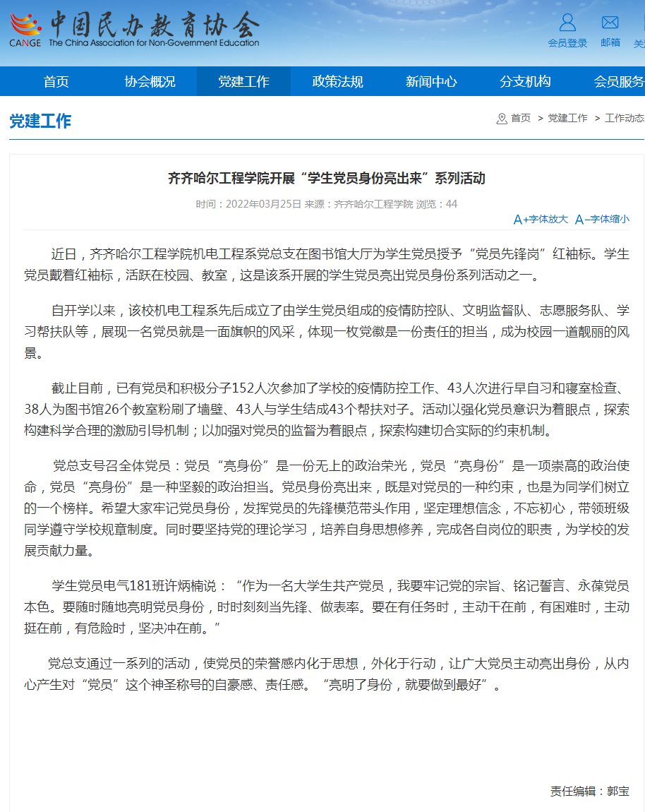 中国民办教育协会网:永利23411集团官网开展“学生党员身份亮出来”系列活动