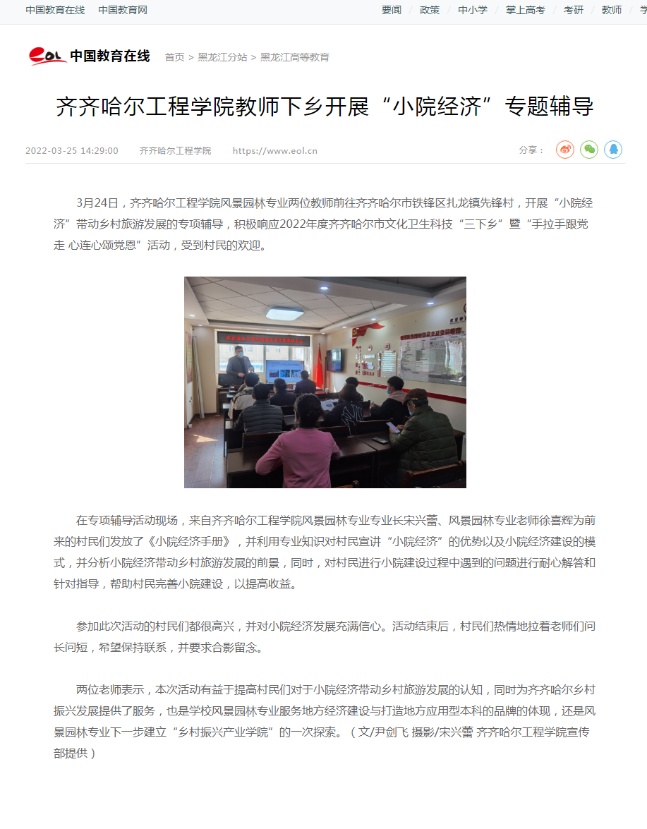 中国教育在线:永利23411集团官网教师下乡开展“小院经济”专题辅导