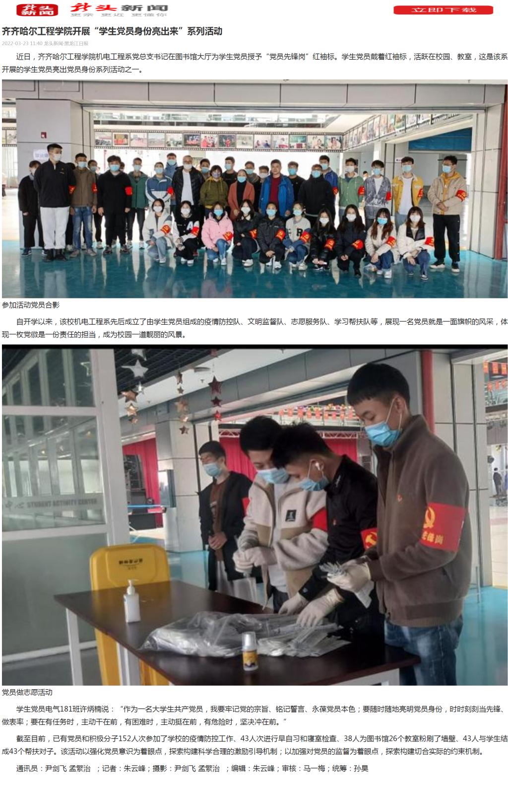 龙头新闻:永利23411集团官网开展“学生党员身份亮出来”系列活动