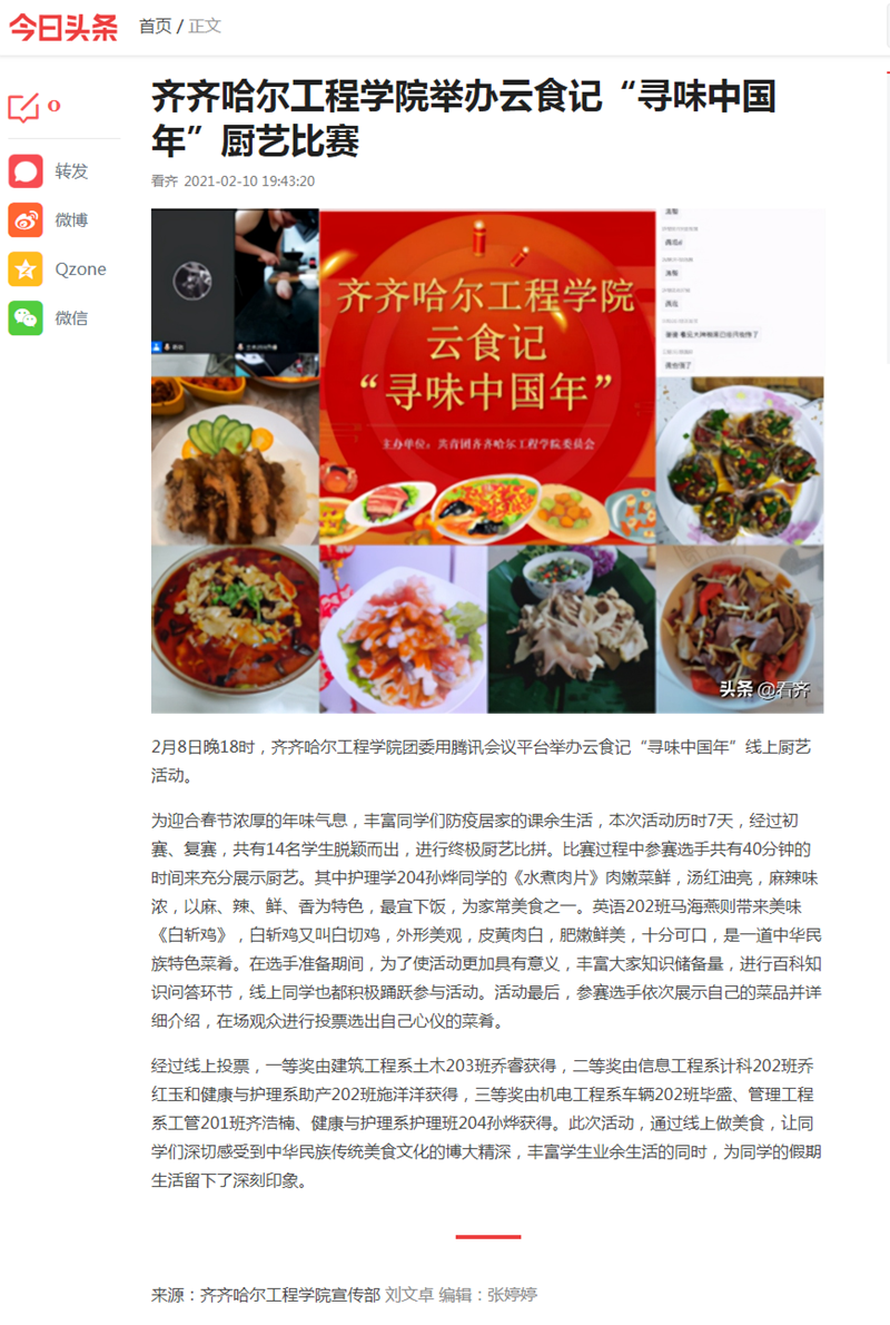 今日头条:永利23411集团官网举办云食记“寻味中国年”厨艺比赛