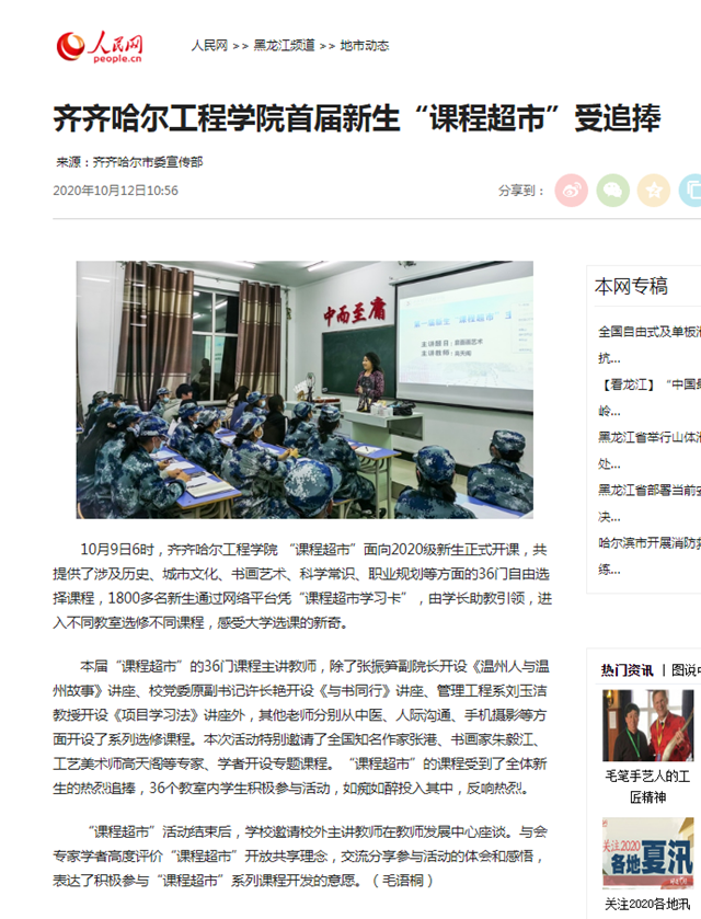 人民网:永利23411集团官网首届新生“课程超市”受追捧