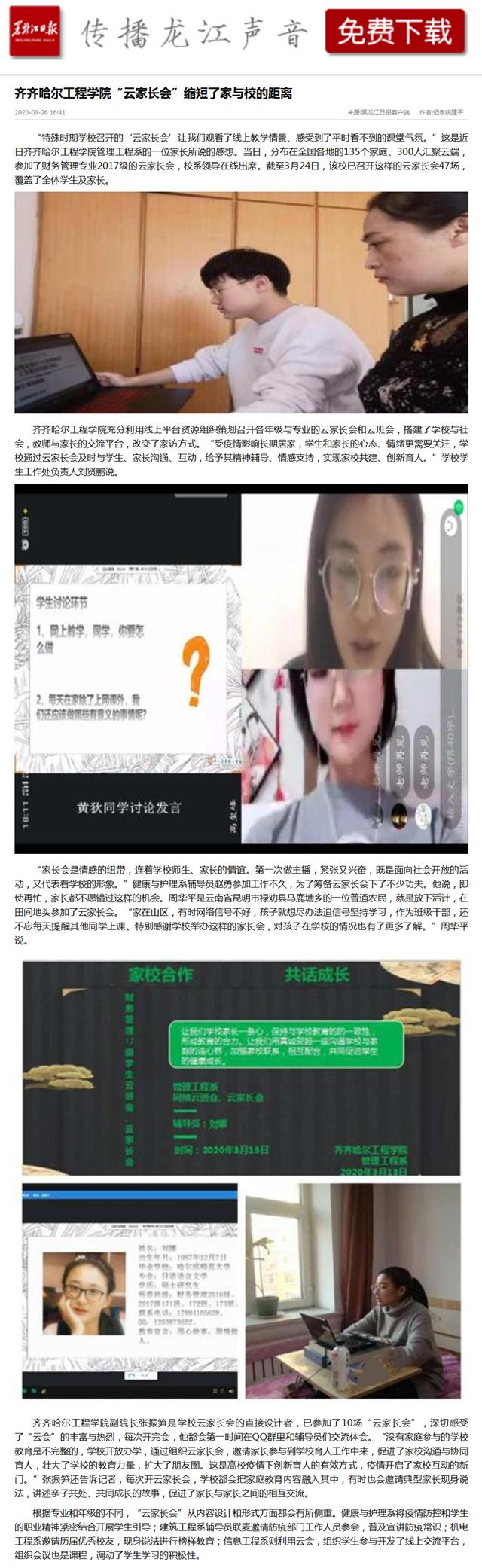 黑龙江日报客户端:永利23411集团官网“云家长会”缩短了家与校的距离