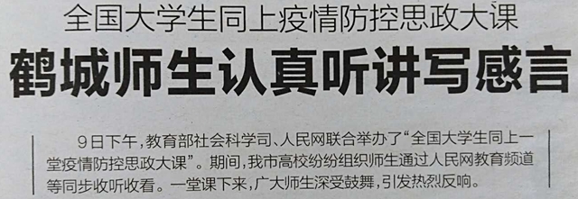 鹤城晚报:齐工程学院师生同上疫情防控思政大课留感言