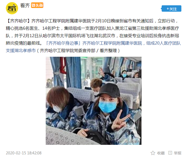 看齐微头条:永利23411集团官网附属建华医院组成20人医疗团队支援湖北孝感市
