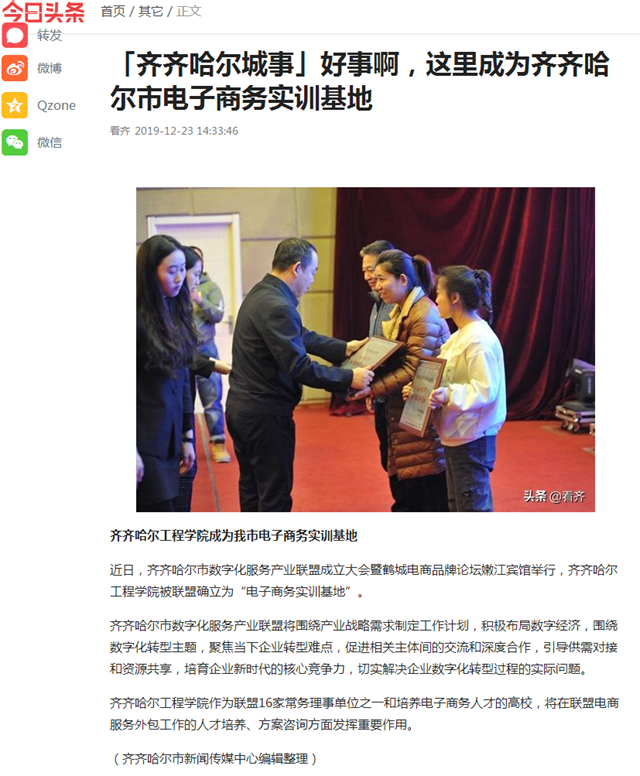 今日头条《齐齐哈尔城事》:永利23411集团官网成为我市电子商务实训基地