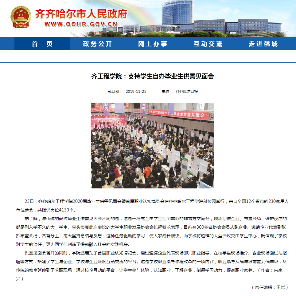 齐齐哈尔市人民政府网:齐工程学院支持学生自办毕业生供需见面会