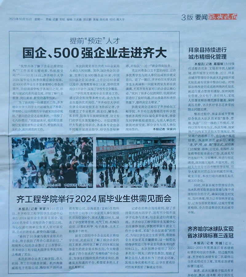 鹤城晚报:齐工程学院举行2024届毕业生供需见面会