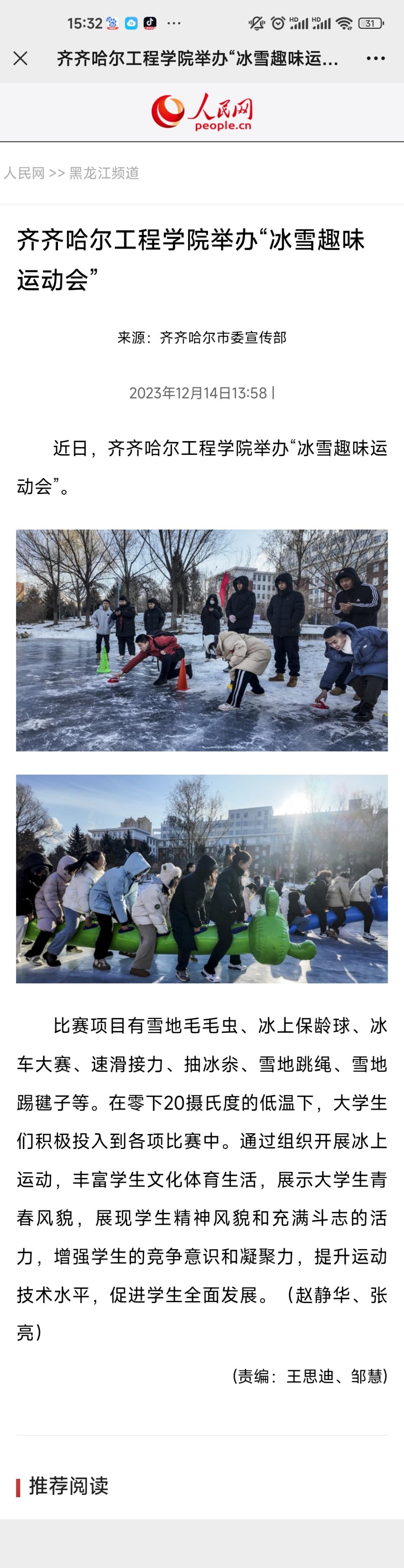 人民网黑龙江频道:永利23411集团官网举办“冰雪趣味运动会”