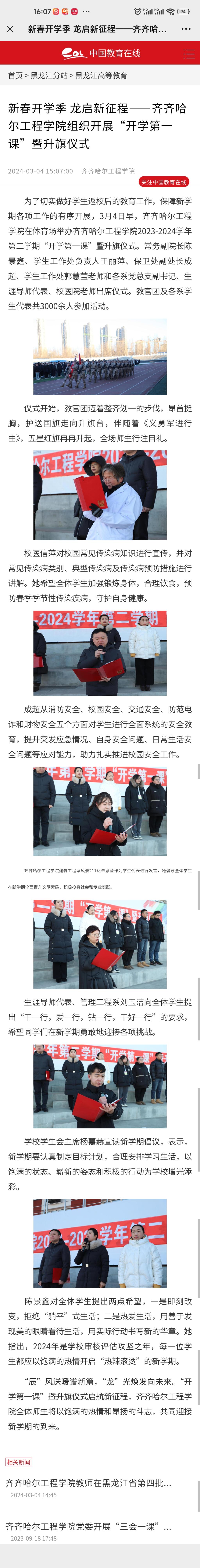 《中国教育在线》报道新春开学季 龙启新征程——学校组织开展“开学第一课”暨升旗仪式