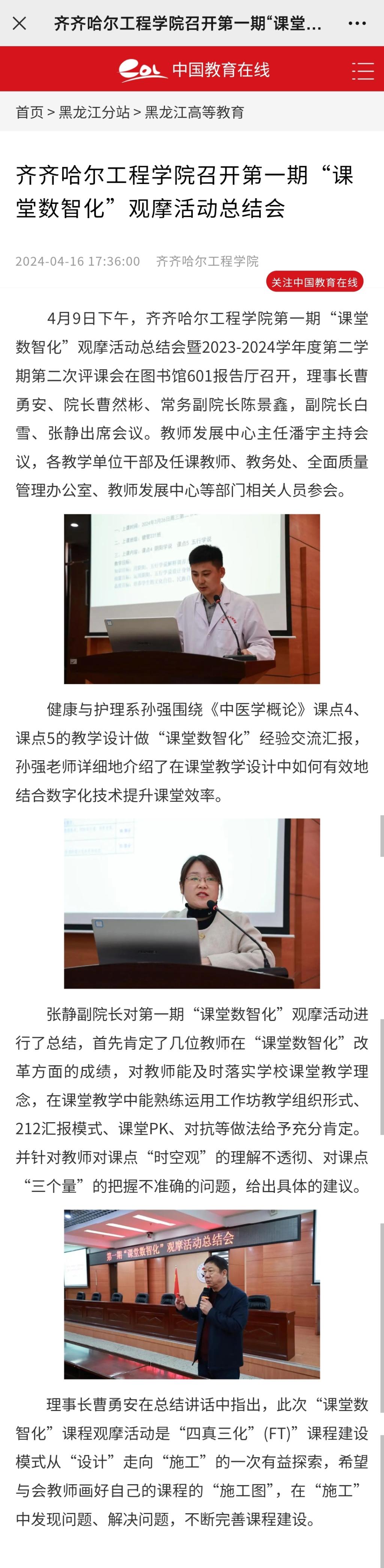 《中国教育在线》发表永利23411集团官网召开第一期“课堂数智化”观摩活动总结会