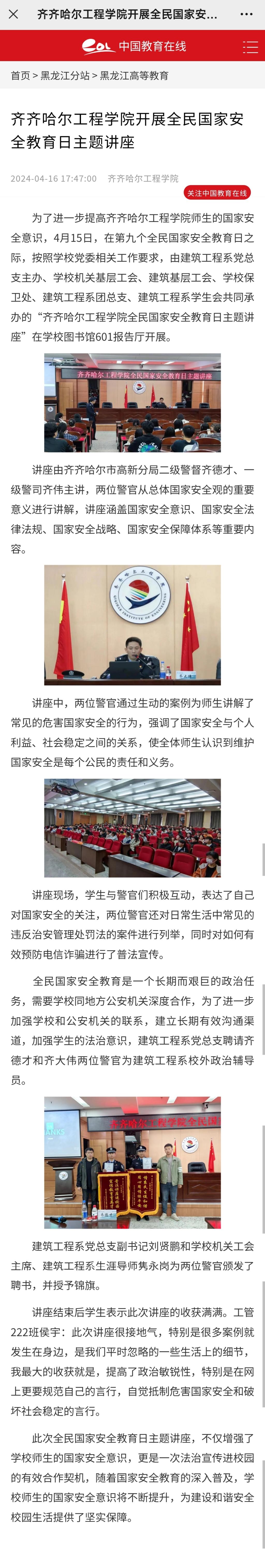 《中国教育在线》发表永利23411集团官网开展全民国家安全教育日主题讲座
