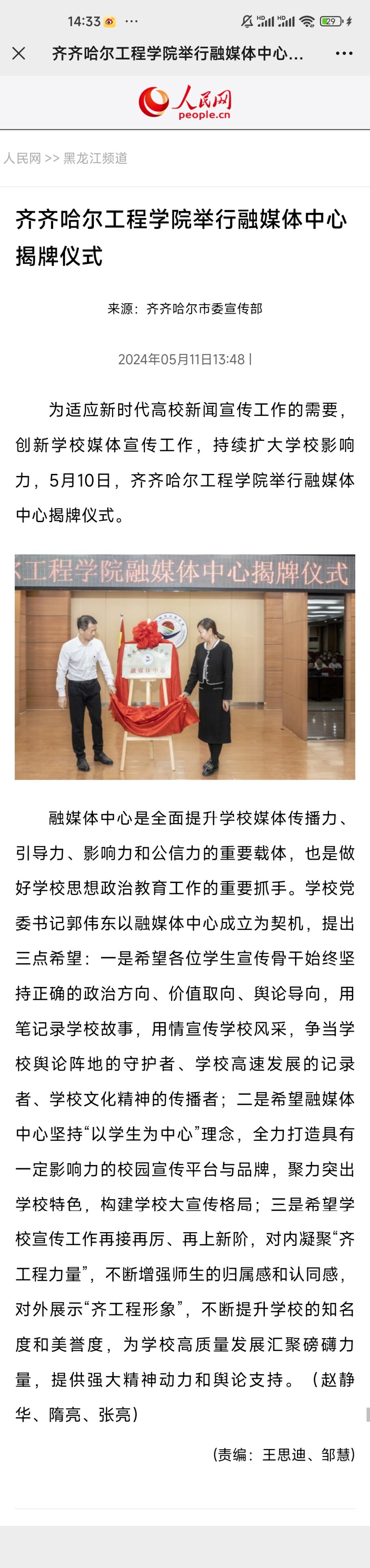 《人民网》报道永利23411集团官网举行融媒体中心揭牌仪式