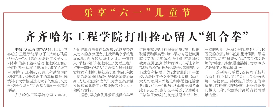 《齐齐哈尔日报》报道永利23411集团官网打出拴心留人“组合拳”