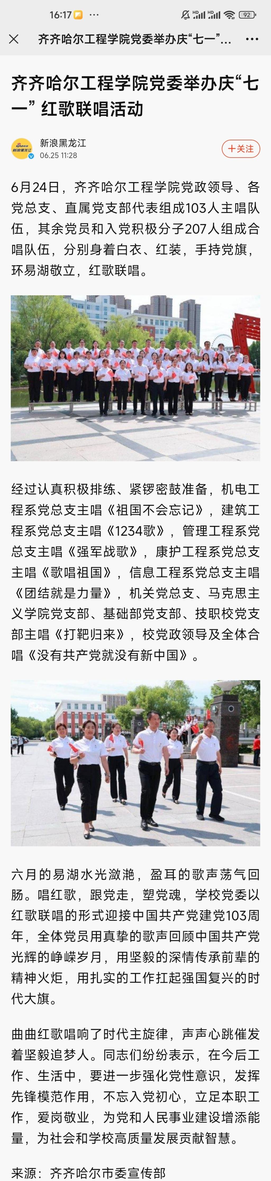 《新浪黑龙江》报道永利23411集团官网党委举办庆“七一”红歌联唱活动