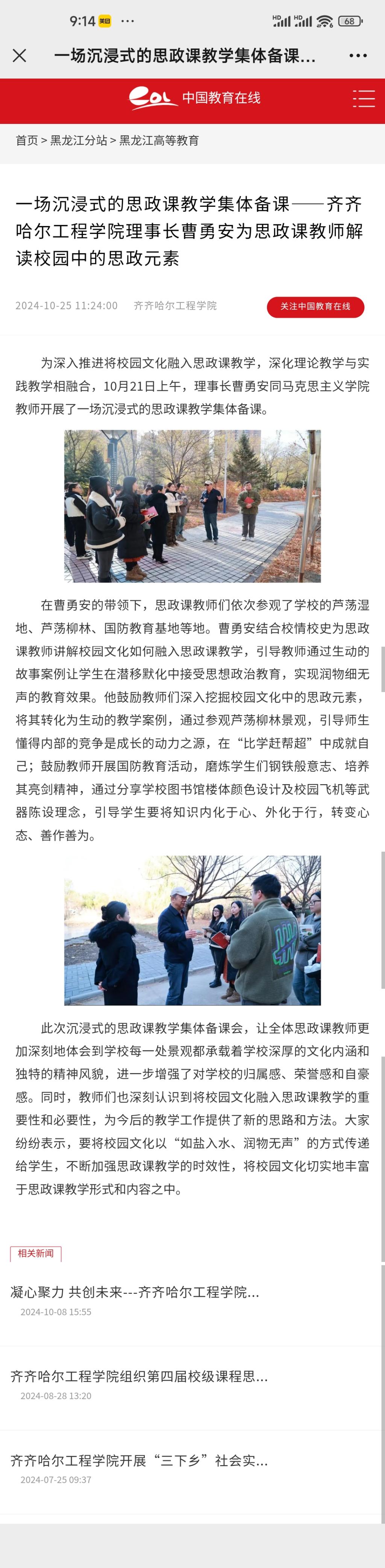 《中国教育在线》一场沉浸式的思政课教学集体备课——永利23411集团官网理事长曹勇安为思政课教师解读校园中的思政元素