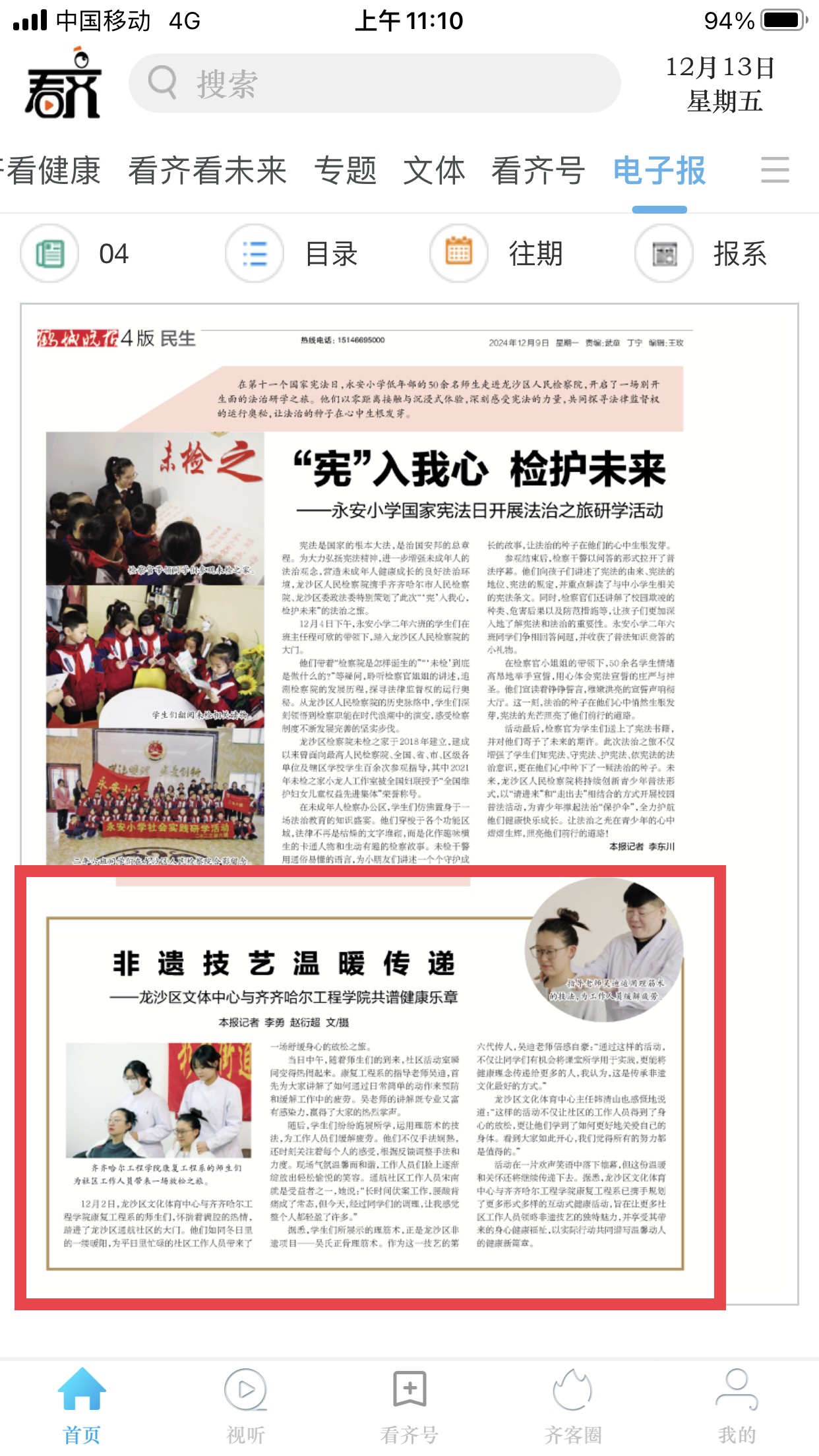 《鹤城晚报》非遗技艺温暖传递——龙沙区文体中心与永利23411集团官网共谱健康乐章