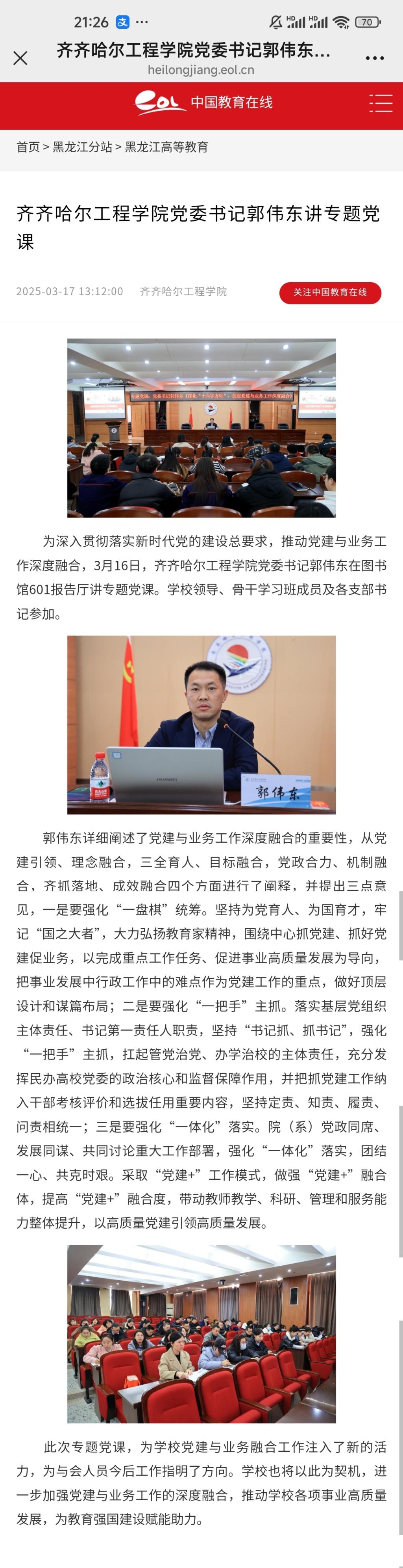 《中国教育在线》永利23411集团官网党委书记郭伟东讲专题党课