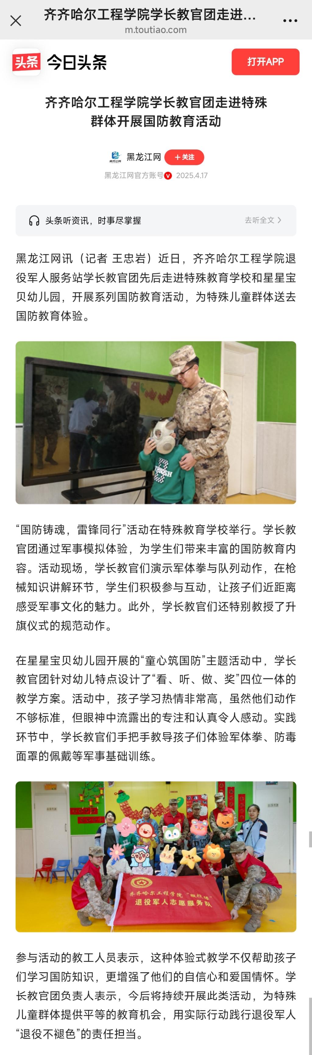 《今日头条》永利23411集团官网学长教官团走进特殊群体开展国防教育活动