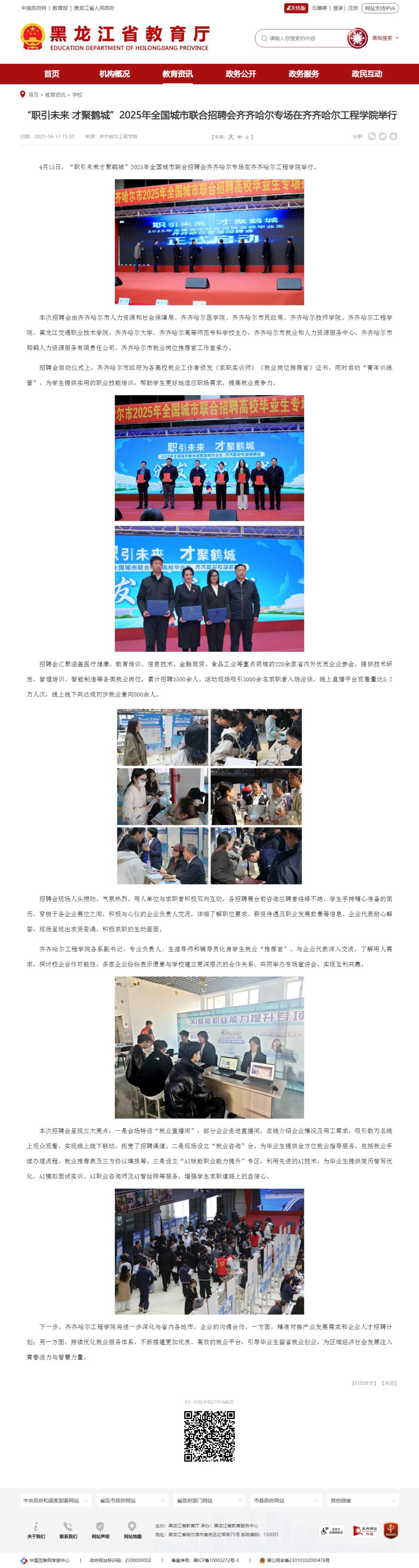 《黑龙江省教育厅》“职引未来 才聚鹤城”2025年全国城市联合招聘会齐齐哈尔专场在永利23411集团官网举行