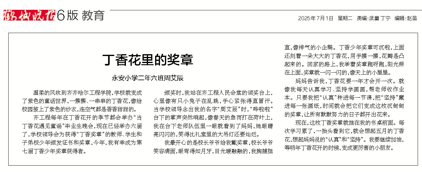 日期:2025-07-06 来源: 作者:永安小学二年六班 周艾辰 浏览次数: