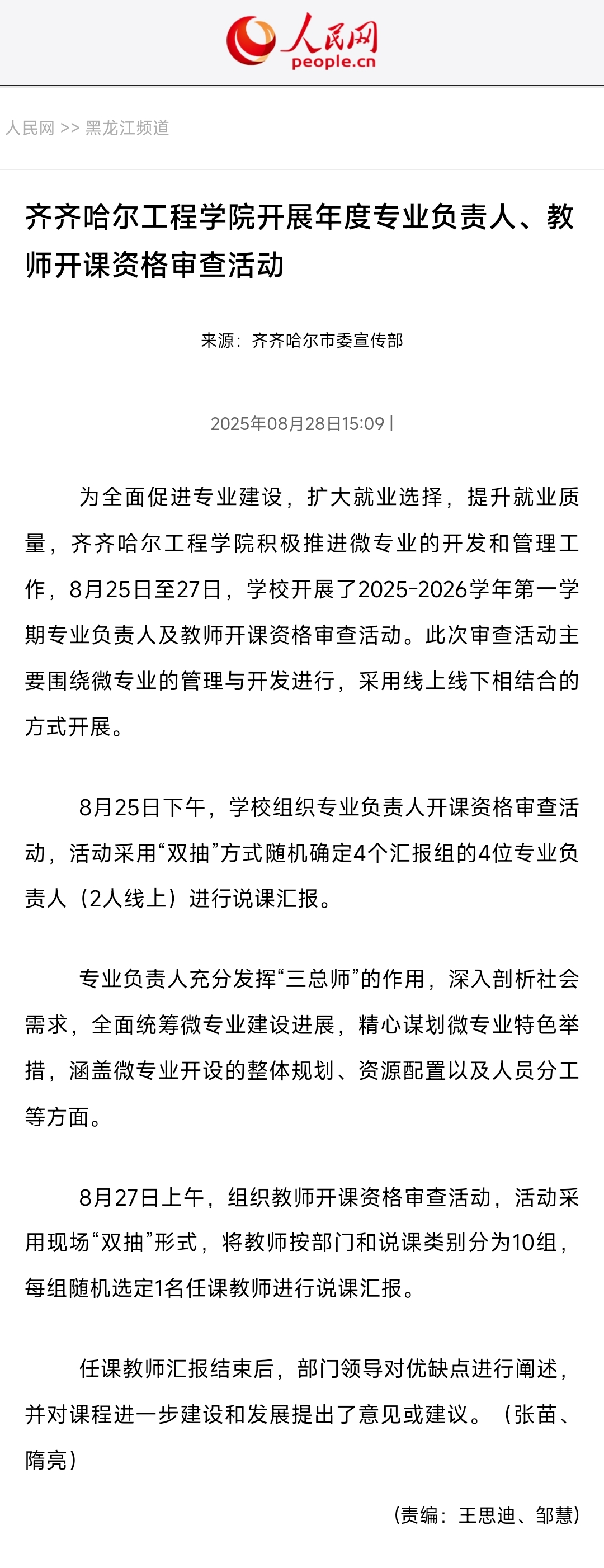 《人民网》永利23411集团官网开展年度专业负责人、教师开课资格审查活动