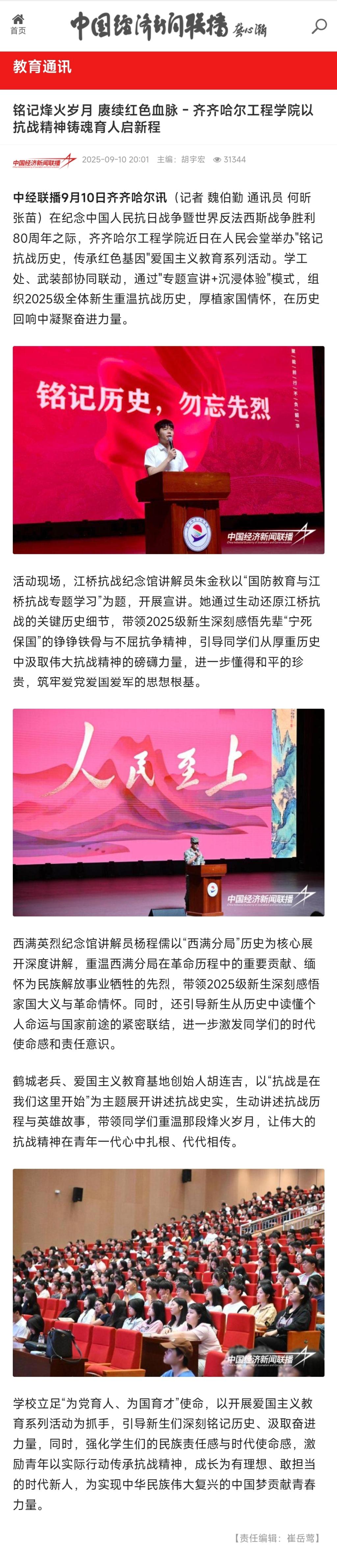 《中国经济新闻联播》铭记烽火岁月 赓续红色血脉-永利23411集团官网以抗战精神铸魂育人启新程