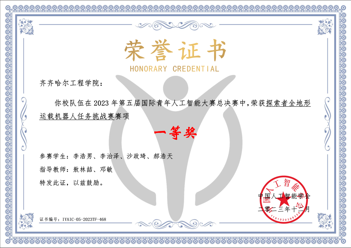 在近期举办的第五届国际青年人工智能大赛中,永利机电工程系汽车服务工程专业学生李浩男、文绍达、徐芝勇、李治泽等8名同学组建的两支队伍表现出色,分别斩获探索者全地形运载机器人任务挑战赛总决赛一等奖、二等奖。