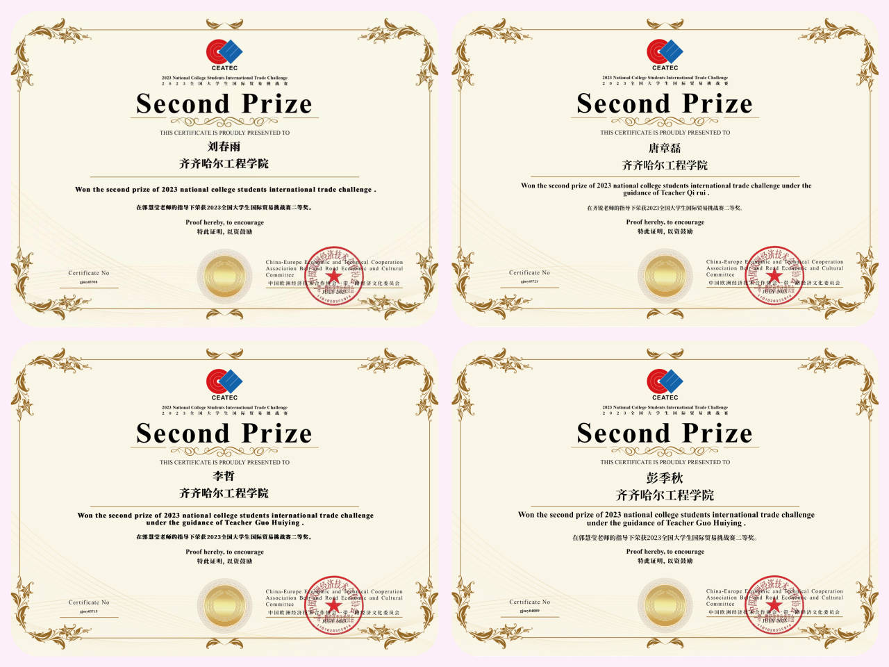 7月26日,2023全国大学生国际贸易挑战赛结束,学校管理工程系英语专业共有4名学生获二等奖,14名学生获三等奖。