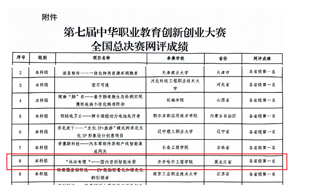4月26日,全国中华职业教育创新创业大赛全国总决赛网评结果落下帷幕,永利推荐的由健康与护理系学生团队创作的“冰冰有理一全国首创智能冰袋”项目以网评本科组全国第八名,黑龙江省第一名的好成绩成功入围全国总决赛。