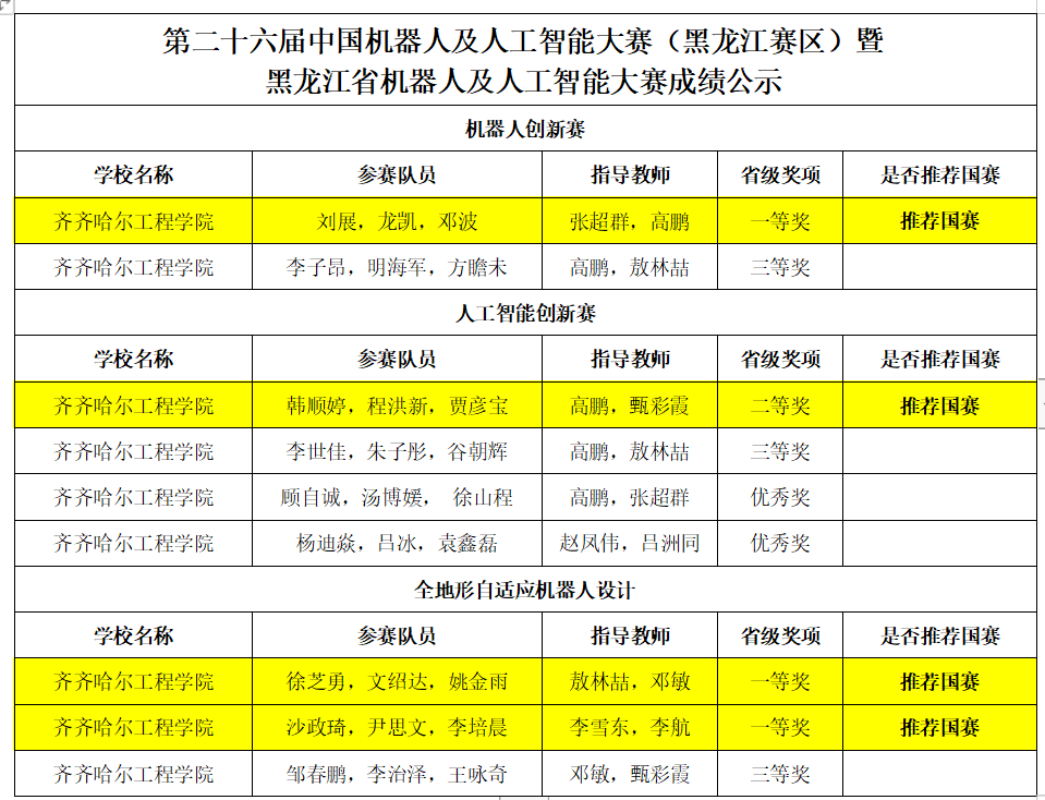 7月2日,第二十六届中国机器人及人工智能大赛(黑龙江赛区)暨第七届黑龙江省机器人及人工智能大赛比赛结果公布:永利机电工程系学生共斩获一等奖3项、二等奖1项、三等奖3项、优秀奖2项。