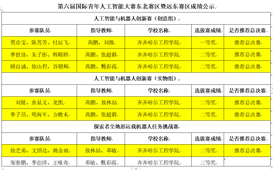 7月8日,第六届国际青年人工智能大赛东北赛区暨远东赛区选拔赛比赛结果公布,永利机电工程系学生共斩获一等奖1项、二等奖5项、三等奖1项,其中一等奖、二等奖队伍获得总决赛资格。