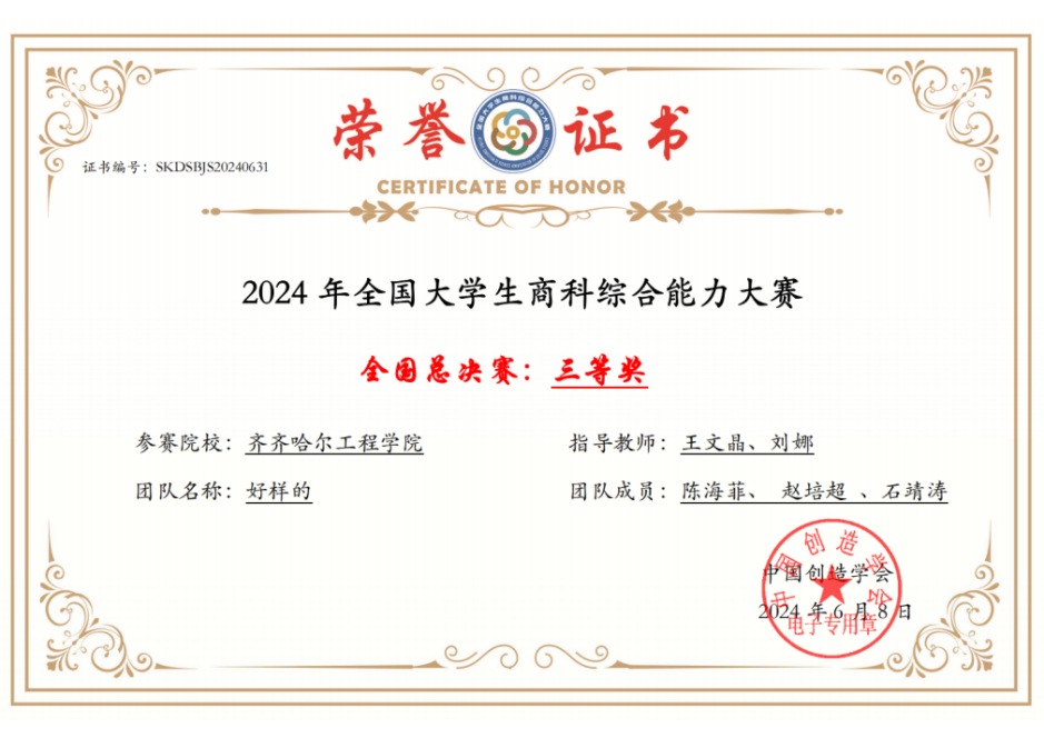 近日,2024年全国大学生商科综合能力大赛正式落幕。永利管理工程系互联网金融专业两组学生团队获得了国赛“三等奖”的好成绩。