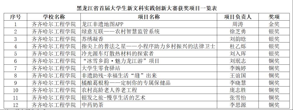 近日,黑龙江省首届大学生新文科实践创新大赛决赛在黑龙江大学举行,来自全省各高校共计584组选手同台竞技。最终,永利共计12组项目脱颖而出,荣获金奖1项,银奖4项,铜奖7项,其中“龙江非遗地图APP”“指尖上的普法之星—小程序助力乡村振兴的法律卫士”“绿意互联—农村智慧监管系统”“苏绣凝香”4组项目成功进入全国总决赛。