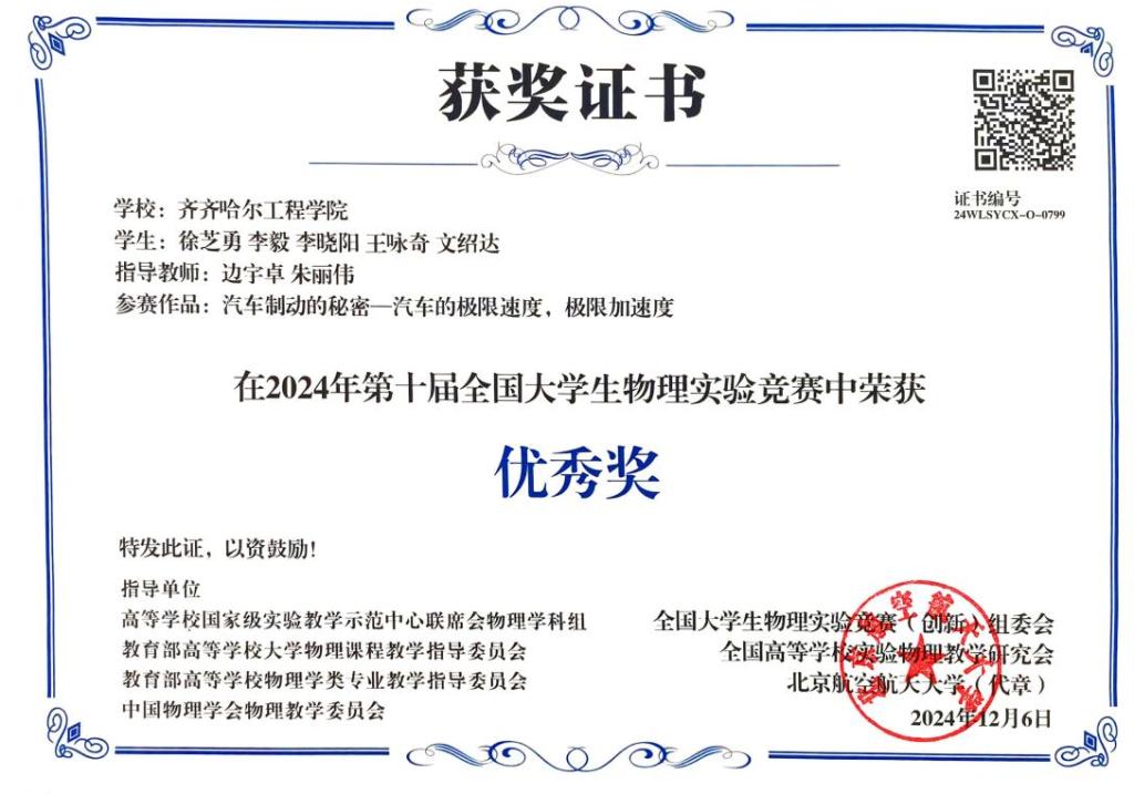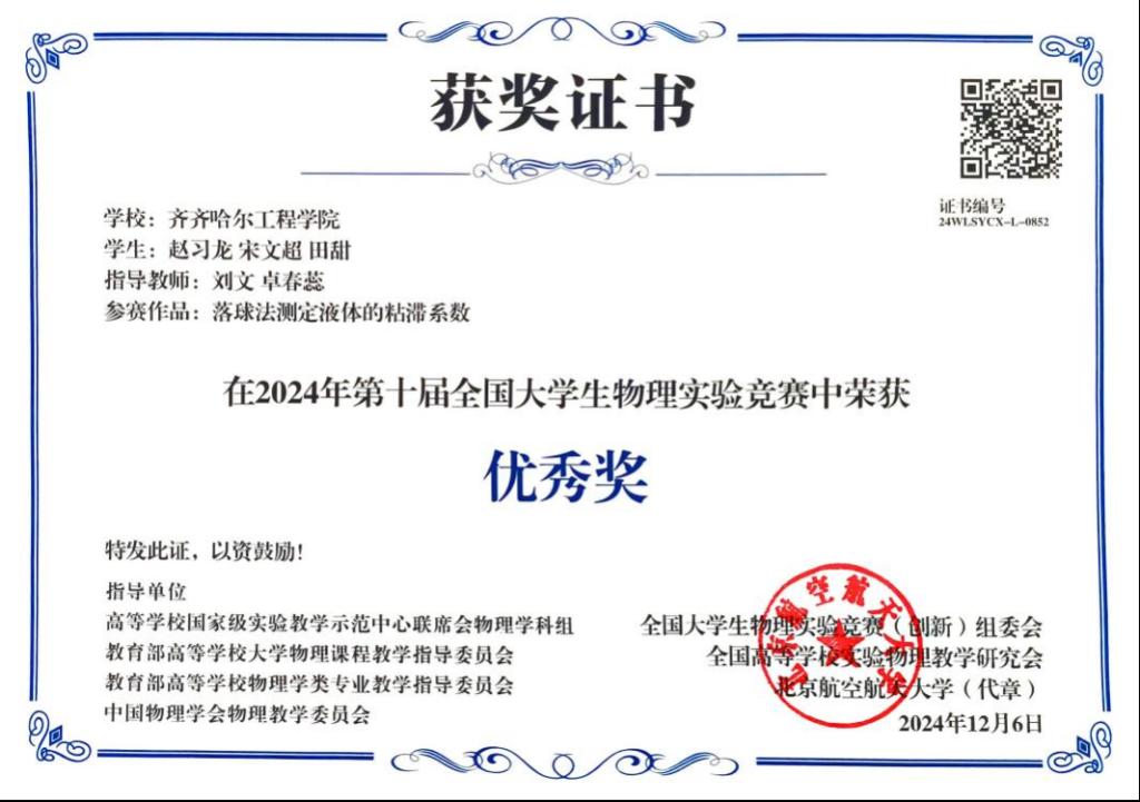 近日,第十届全国大学生物理实验竞赛(创新)传来喜讯,永利代表队荣获三等奖1项、优秀奖2项。