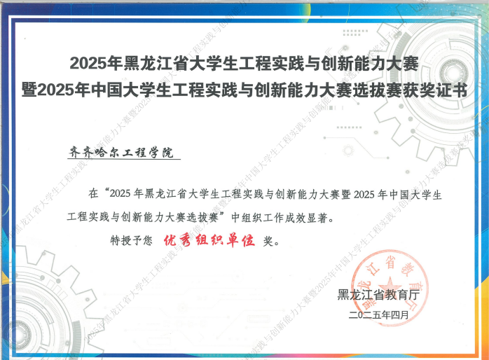 近日,由黑龙江省教育厅主办、哈尔滨工业大学承办的2025年黑龙江省大学生工程实践与创新能力大赛暨2025年中国大学生工程实践与创新能力大赛选拔赛圆满落下帷幕。永利在此次比赛中表现突出,斩获工程创客赛道工程文化赛项、智能机电产品创新设计赛项与全地形赛项特等奖3项、一等奖6项、二等奖4项,虚拟仿真赛道企业运营仿真赛项一等奖1项、二等奖4项,“智能+”赛道智能物流搬运赛项与生活垃圾智能分类赛项二等奖各1项,新能源车赛道太阳能电动车赛项二等奖2项;5位教师获“优秀指导教师”称号;学校在此次赛事中荣获“优秀组织单位”。
