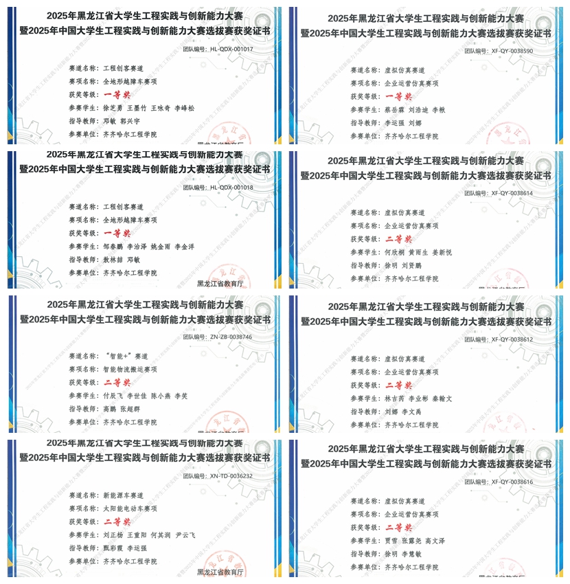 永利参赛团队在指导教师的悉心指导下,以精益求精的态度打磨作品,以默契高效的配合应对挑战,最终在众多强手中脱颖而出,斩获22项省级奖项,充分展现了齐工程学子“重实践、敢创新、善协作”的精神风貌。