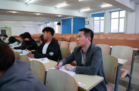 在图书馆401教室,郭伟东书记认真聆听了马克思主义学院邵奇老师为2023级土木工程专业232、233班同学讲授的思想道德与法治课程内容。郭伟东书记一边认真听取教师的讲授,一边仔细观察教师教学组织、学生听课状态和学习效果,并认真作听课记录。