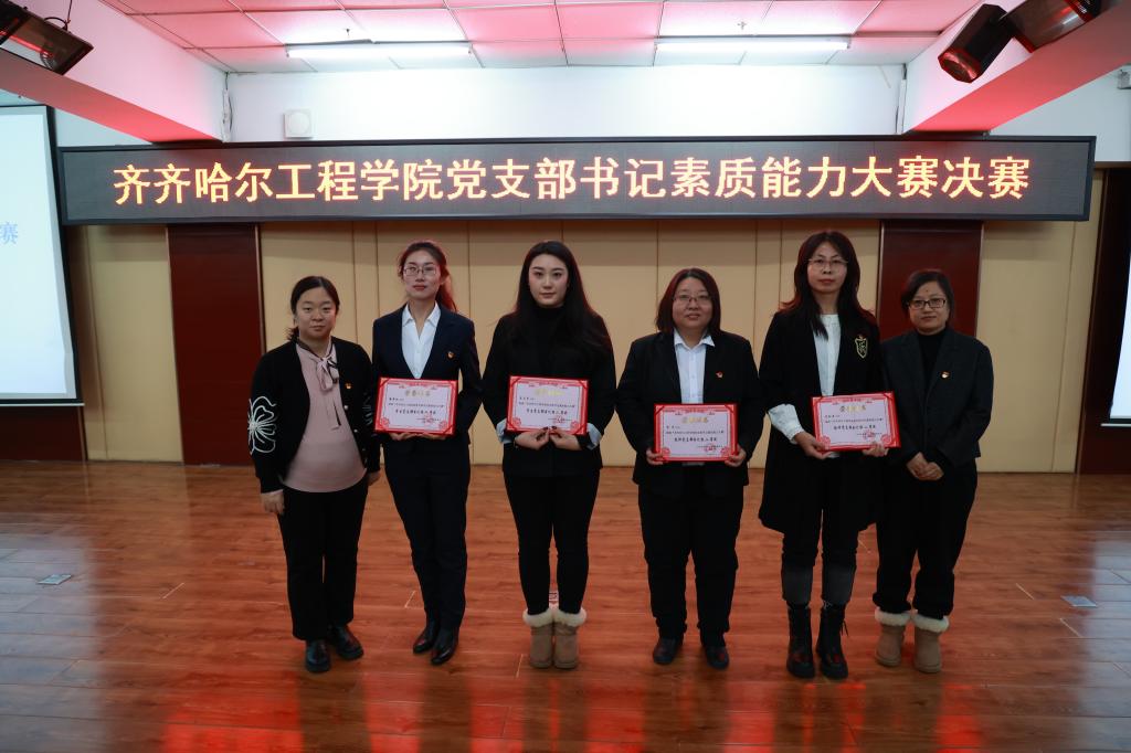 最终,教师党支部书记组的信息工程系郭伟伟获得一等奖、机电工程系宋华、管理工程系于红岩获得二等奖、建筑工程系袁继杰、机电工程系刘智获得三等奖,学生党支部书记组的建筑工程系蔡爽获得一等奖、机电工程系潘帝池、信息工程系兰天月获得二等奖、建筑工程系王雪、管理工程系刘娜获得三等奖。五位评委分别为获奖选手颁奖。