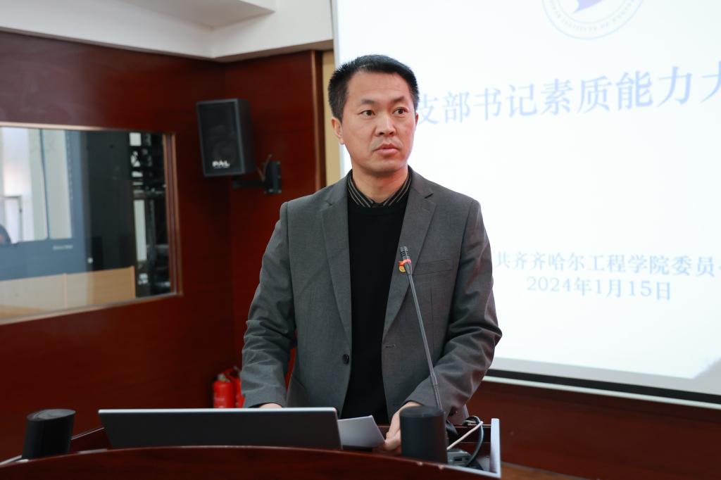 郭伟东在讲话中指出,党支部书记是基层党组织的第一责任人,是基层党建工作的核心力量,是落实“党的一切工作到支部”的重要保障。举办这次大赛,是为了学习习近平新时代中国特色社会主义思想,贯彻落实新时代党建工作要求,通过赛技能、破难题、促工作,推动全校党务工作者学习党务知识、增强党务本领。他对全校党支部书记下一步工作提出期望:一是旗帜鲜明讲政治,切实提升政治素质。要把握政治方向、站稳政治立场、永葆政治本色。二是善于谋划布全局,切实提升工作质量。要在学习中谋划、在调研中谋划、在落实中谋划。三是提升能力树形象,切实发挥模范作用。要以德服人、公道正派、迎难而上。