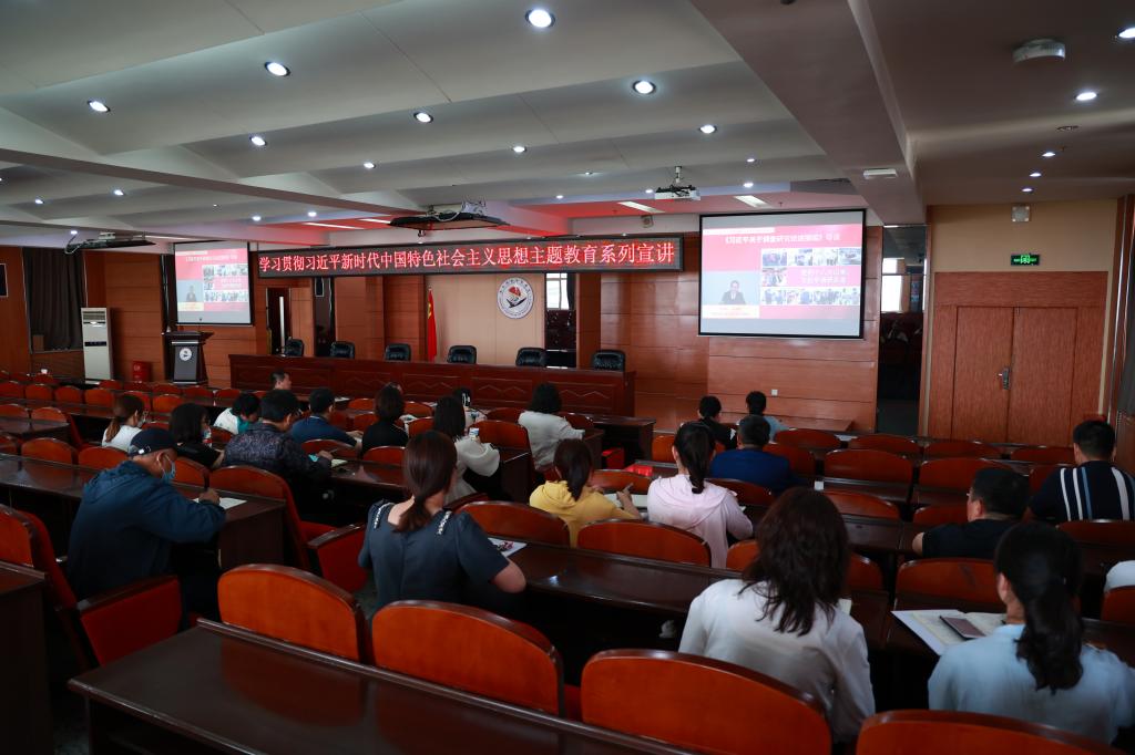 6月15日上午,学校党委在图书馆601报告厅组织聆听学习贯彻习近平新时代中国特色社会主义思想主题教育宣讲,主要学习中共黑龙江省委讲师团录制、省委党校(省行政学院)副教授赵海艳主讲的《< 习近平关于调查研究论述摘编>导读》,校领导、骨干学习班成员线上收听收看。