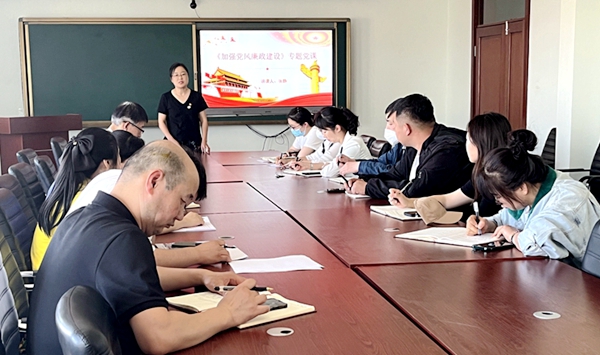 6月6日下午,教务长张静召集分管部门及机关第二党支部党员在图书馆608会议室召开学习贯彻习近平新时代中国特色社会主义思想主题教育专题党课报告会。张静教务长作题为《加强党风廉政建设》的专题报告,支部党员及分管部门教师代表参会。