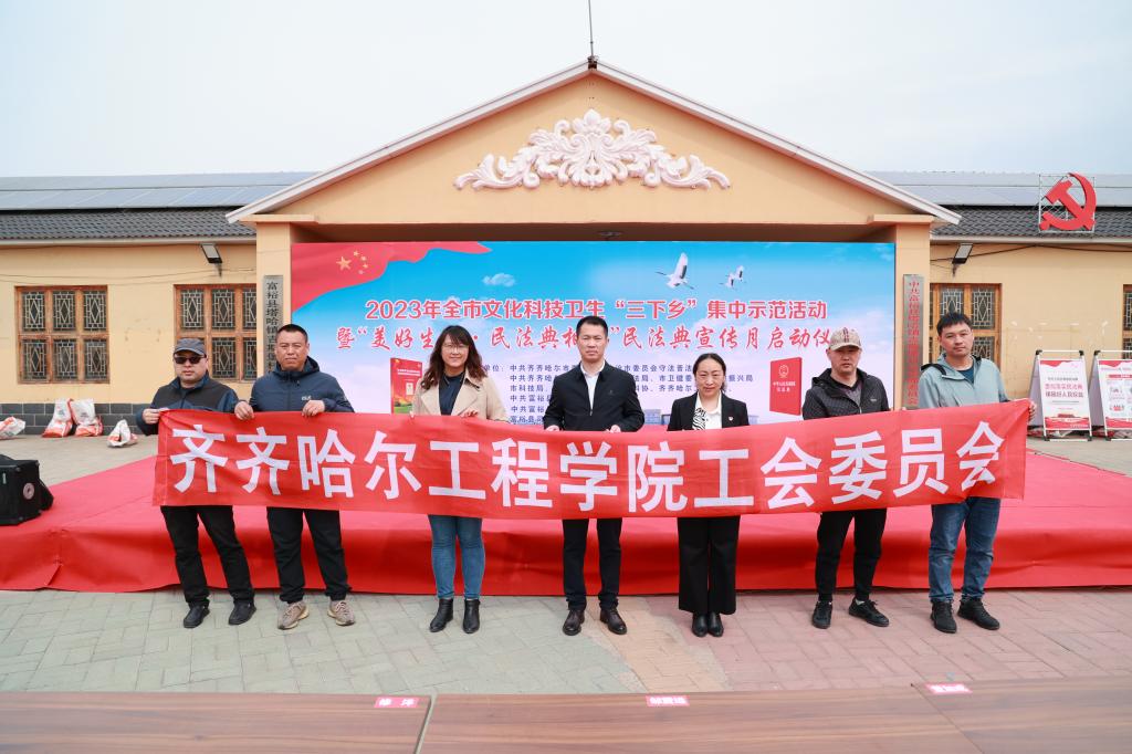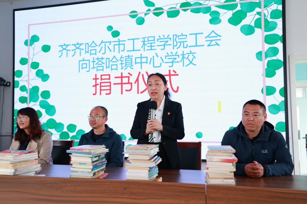学校党委书记郭伟东参加了启动仪式,代表学校为塔哈镇各村文明实践站捐送东北抗联精神、北大荒精神、大庆精神(铁人精神)等共产党人精神谱系书籍。
