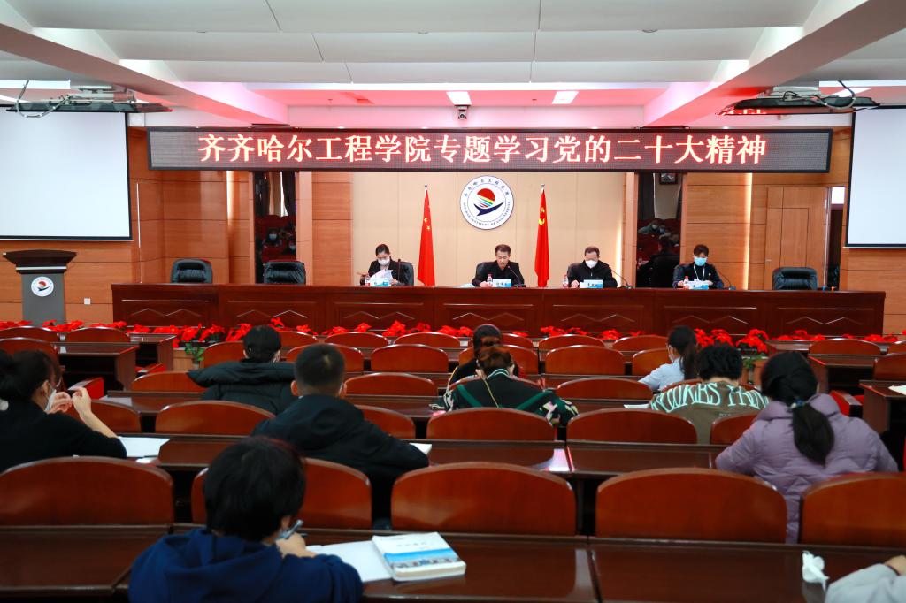 就如何深入学习二十大报告,如何学习贯彻落实党的二十大精神,郭伟东书记提出五点要求:一是要深刻学习领会二十大精神的丰富内涵。各基层党组织要切实抓好党的二十大精神的学习、宣讲和贯彻落实工作;二是要深刻学习领会新时代十年的伟大变革。要始终在政治立场、政治方向、政治原则、政治道路上同以习近平同志为核心的党中央保持高度一致;三是要深刻学习领会马克思主义中国化时代化新境界。要坚持用科学理论武装头脑、指导实践、推动工作;四是要深刻学习领会新时代新征程党的使命任务。要在推动新时代学校振兴发展上展现更大担当和作为;五是要深刻学习领会新时代党的建设总要求。要坚决扛起管党治党的政治责任,敢于战胜学校振兴发展道路上的一切艰难险阻。