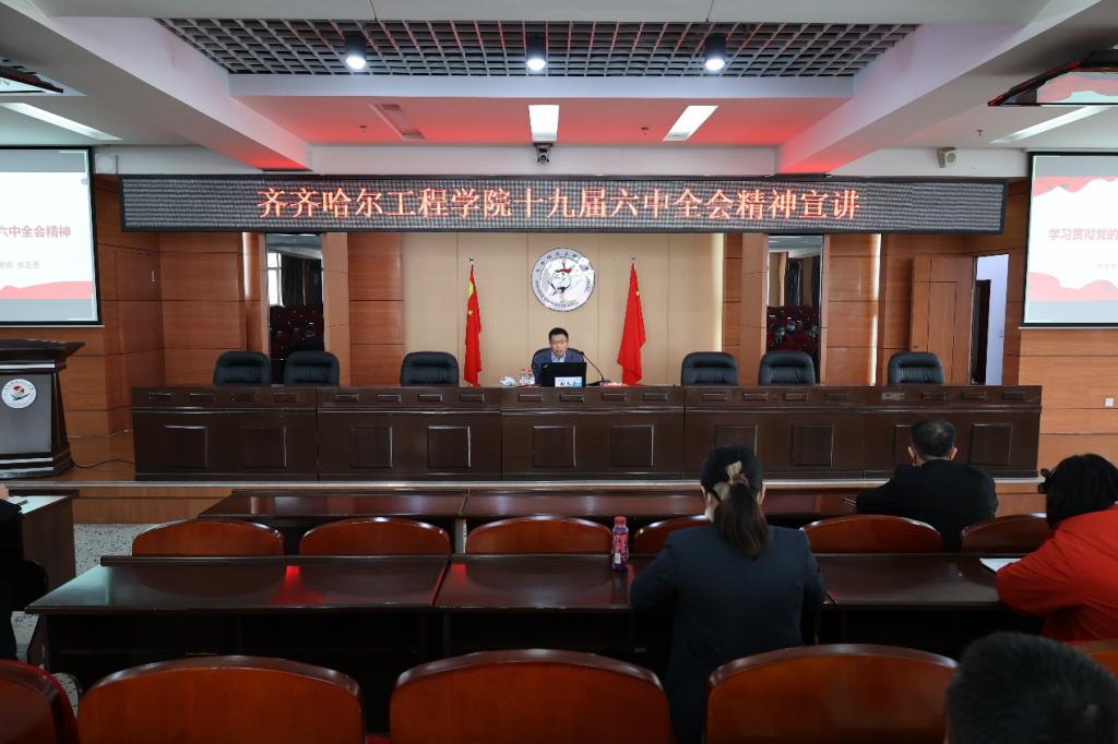 按照省委教育工委和市委相关要求,根据校党委的工作部署,4月23日,永利召开十九届六中全会精神宣讲会。依据防疫要求,全体干部在图书馆601报告厅参会,骨干学习班其他成员、全校其他教工党员、全体学生党员线上参会。