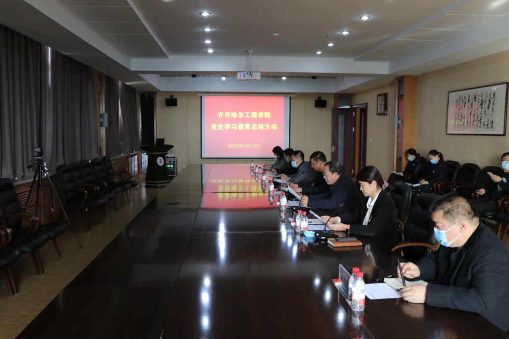 3月12日,党史学习教育总结大会在图书馆603南会议室召开,学校党政领导班子、党史学习教育领导小组办公室主要成员线下参会,全体干部(含专业长)、各系教师党支部书记、学生党支部书记,建华医院党委书记和各党支部书记,以及学生党员代表线上参会。会议由院长、党委副书记曹然彬主持。