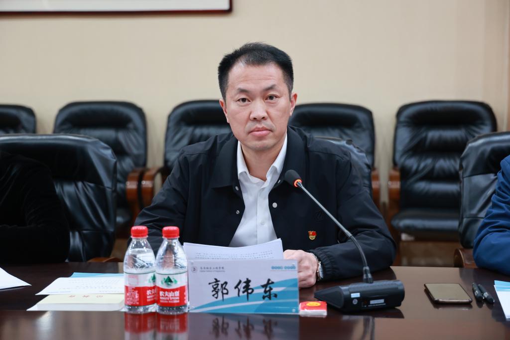 郭伟东总结了学校关于学习贯彻全国教育大会精神的主要情况。指出,为全面深入学习全国教育大会精神,扎实推进贯彻落实工作,切实引导全校上下把思想和行动统一到大会精神上来,学校党委高度重视、迅速行动。一是提高站位、统筹部署,扎实推进务实功。学校党委以习近平新时代中国特色社会主义思想和党的二十大精神为指引,以弘扬教育家精神、加快建设教育强国为己任,以教育教学工作为重心,充分发挥校系理论学习中心组带头作用,全面组织开展学习;二是及时跟进、分级分类,多措并举出实招。学校党委组织干部师生及时观看全国教育大会盛况,围绕大会主旨积极开展热议;全面传达重要讲话精神和大会精神,领导干部悟深学,基层党支部践行学,全体教工跟紧学,全体学生做中学;组织召开“立足本职工作弘扬教育家精神”专题讨论汇报会;三是武装头脑、知行合一,学用结合求实效。学校精心组织了以“老师,你好”为主题的教师节表彰大会、新教师座谈会、为从教20年以上教师赠送纪念摆台等系列活动,激励全校教师立德修身、敬业立学;把大会精神纳入思政课教学,同时,进一步推进各门课有效融入大会精神;依托学校融媒体中心,全面宣传全国教育大会精神主要内容、基本理论,报道各部门学习贯彻全国教育大会精神的具体举措和实际行动,努力营造良好的学习环境和舆论氛围。