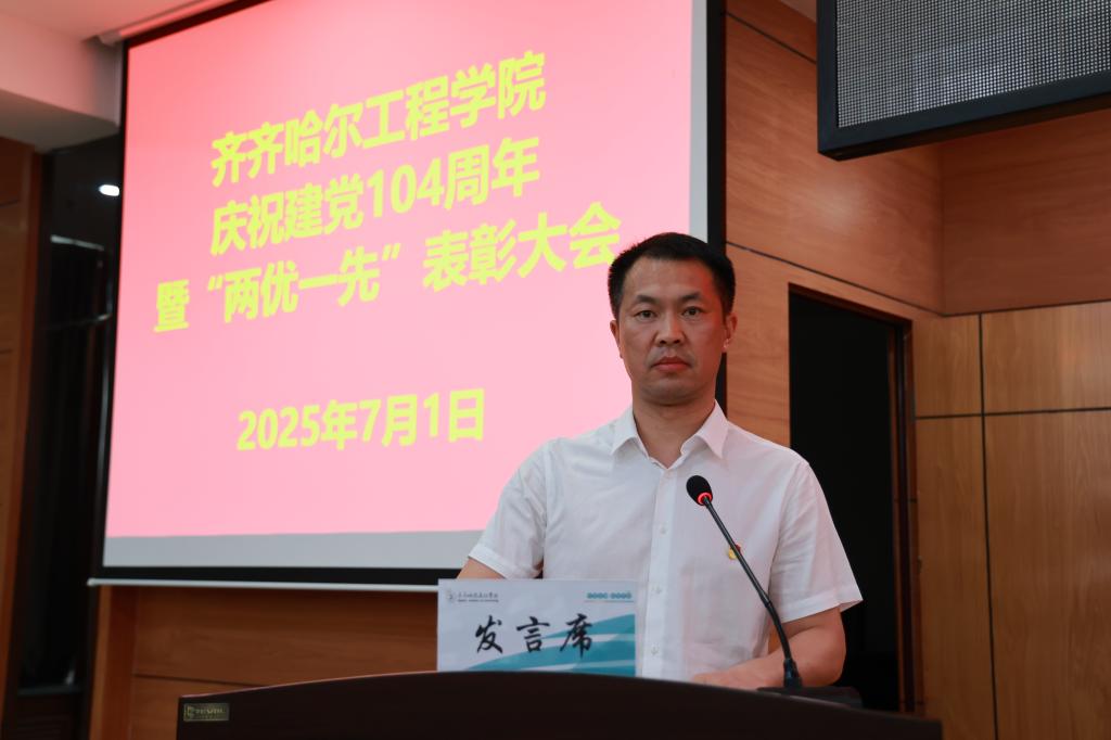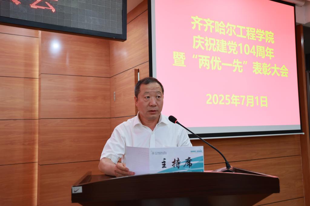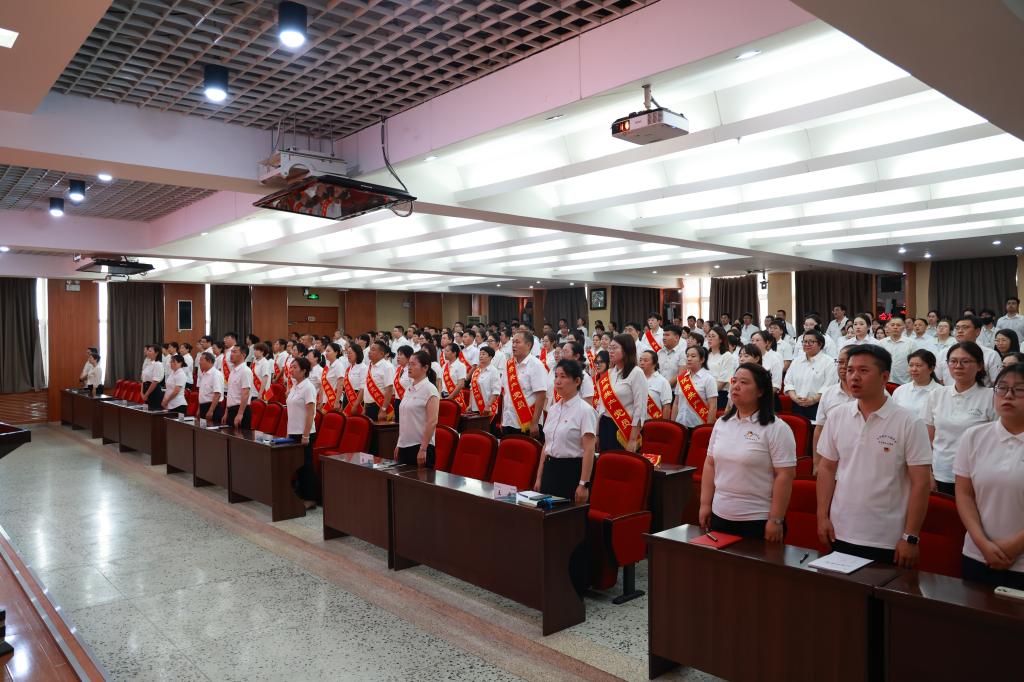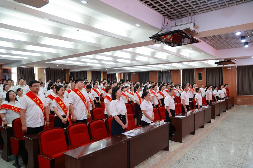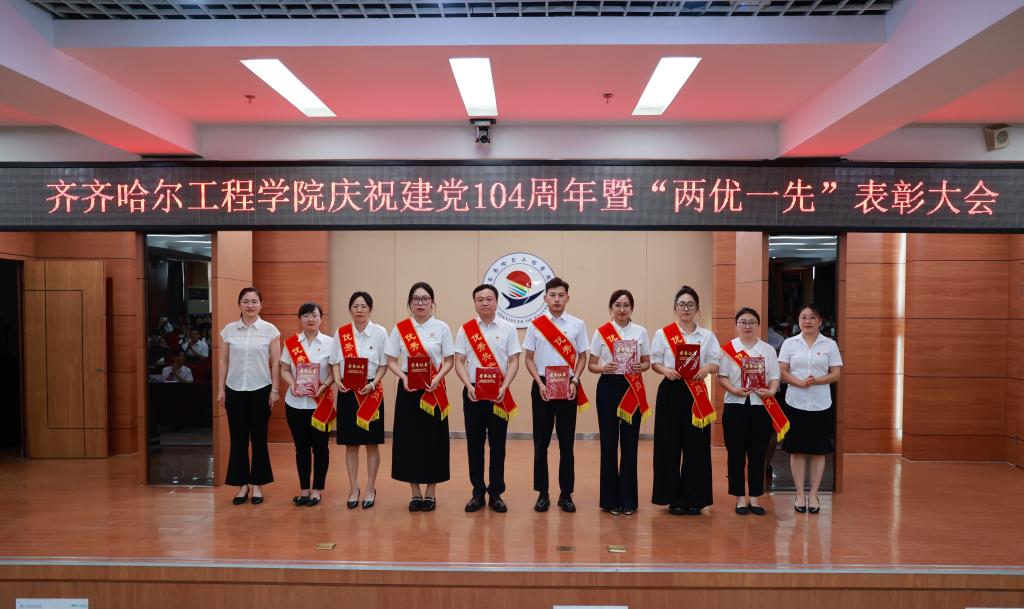 为庆祝中国共产党成立104周年,表彰先进,进一步激励全校各级党组织和全体党员推进党纪学习教育走深走实、推动学校党建与业务工作深度融合,7月1日下午,学校在图书馆601报告厅举行庆祝中国共产党成立104周年暨“两优一先”表彰大会校级党员领导干部、受表彰的先进集体代表、先进个人以及师生党员参