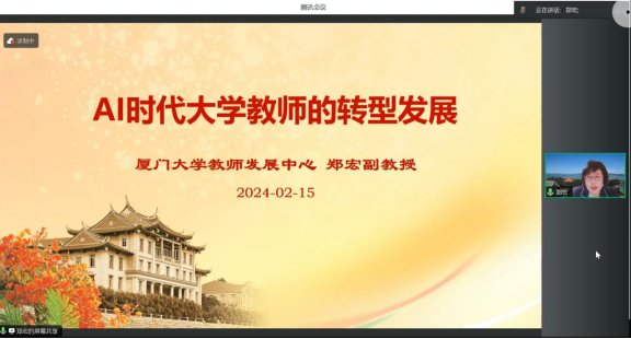 郑宏以《AI时代大学教师的转型发展》为题,从情绪劳动视角来分享对FT的理解。同时她引用了曹勇安教授在《高校转型的最后一公里》中的一段话:“课程像老汤,设计是配方,教学是熬汤,评价是品尝”,进一步说明FT工作坊实际也是对教师自己课程的一种训练。