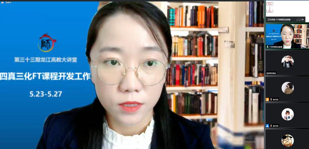 5月23日,由省教育厅高等教育处与高校师资培训中心主办、永利23411集团官网承办的第33期龙江高校大讲堂暨首期“四真三化”(FT)课程开发工作坊(云)正式启幕,来自全省32所本科高校的领导、教师共计156人,投入了沉浸式的工作坊深度学习中,体验别样的学习之旅。