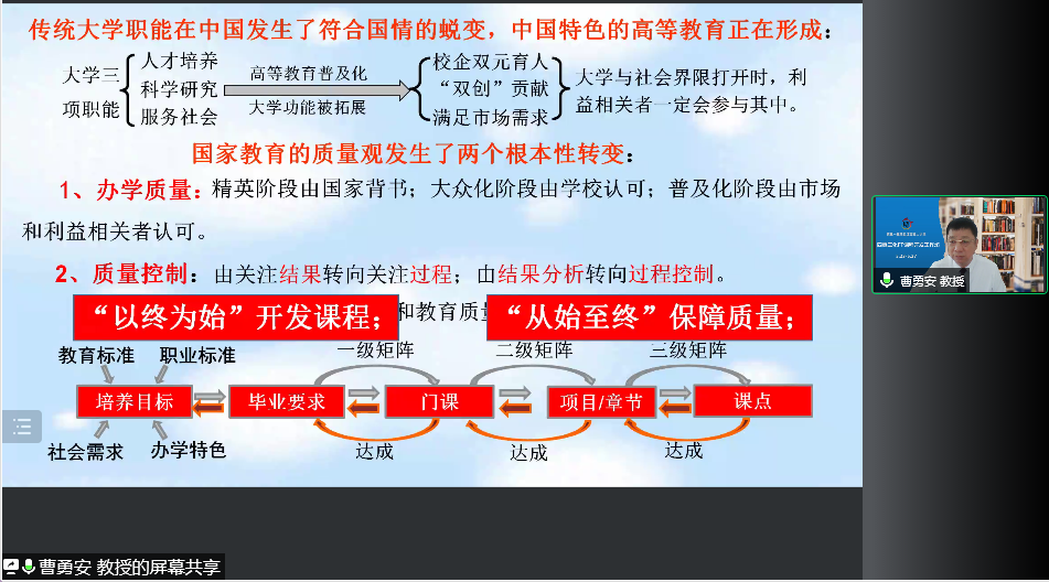 FT讲师团专家郭玲玲老师集中精讲介绍二级矩阵。二级矩阵,即门课矩阵,表示课程教学目标与项目(或章节)之间的关系,对教学内容进行重构,设计出项目(或章节)明确对门课教学目标的支撑。通过郭玲玲老师讲解,学员进一步了解一级矩阵和二级矩阵之间的联系,明确了二级矩阵的编制方法。